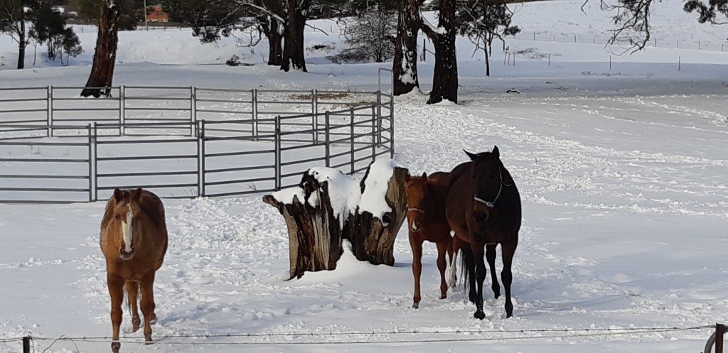 A beautiful moment caught on camera coming back from the Blue Mountains in winter last year 2019. These horses came up to the fence and we got to say hi to them.